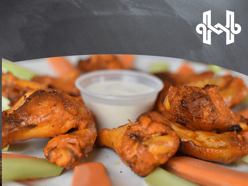 9 pzasde de alitas acompañadas con zanahorias, salsa mango habanero y/o aderezo ranch.