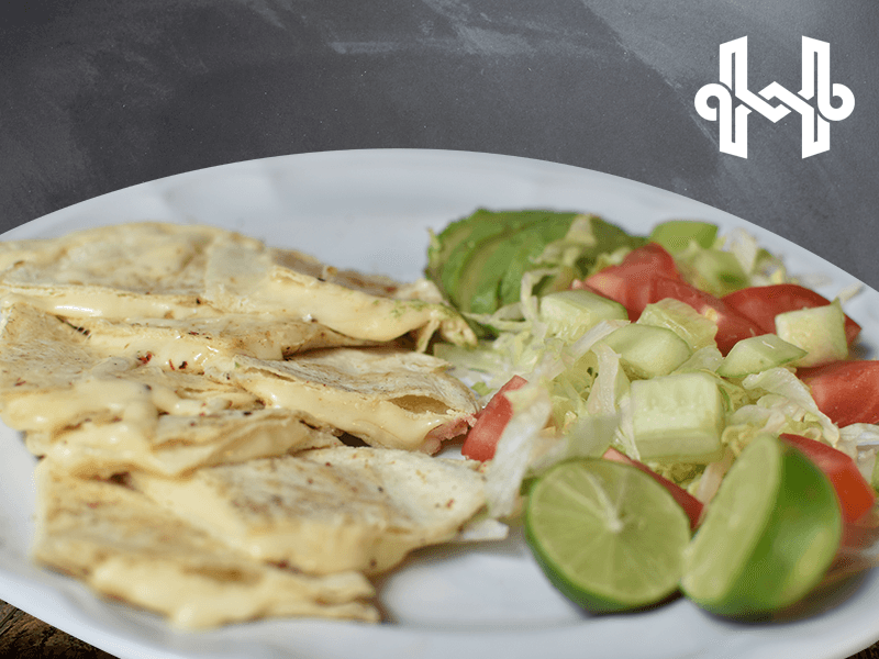 Maíz o harina con queso, acompañadas con verdura, aguacate, y salsa. (partidas en 4)