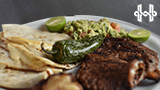 150 grms de carne acompañada con quesadillas, guacamole, toreados y salsa.