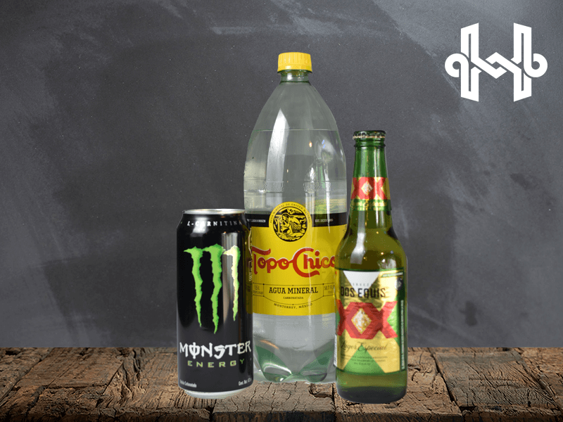 Monster y agua mineral